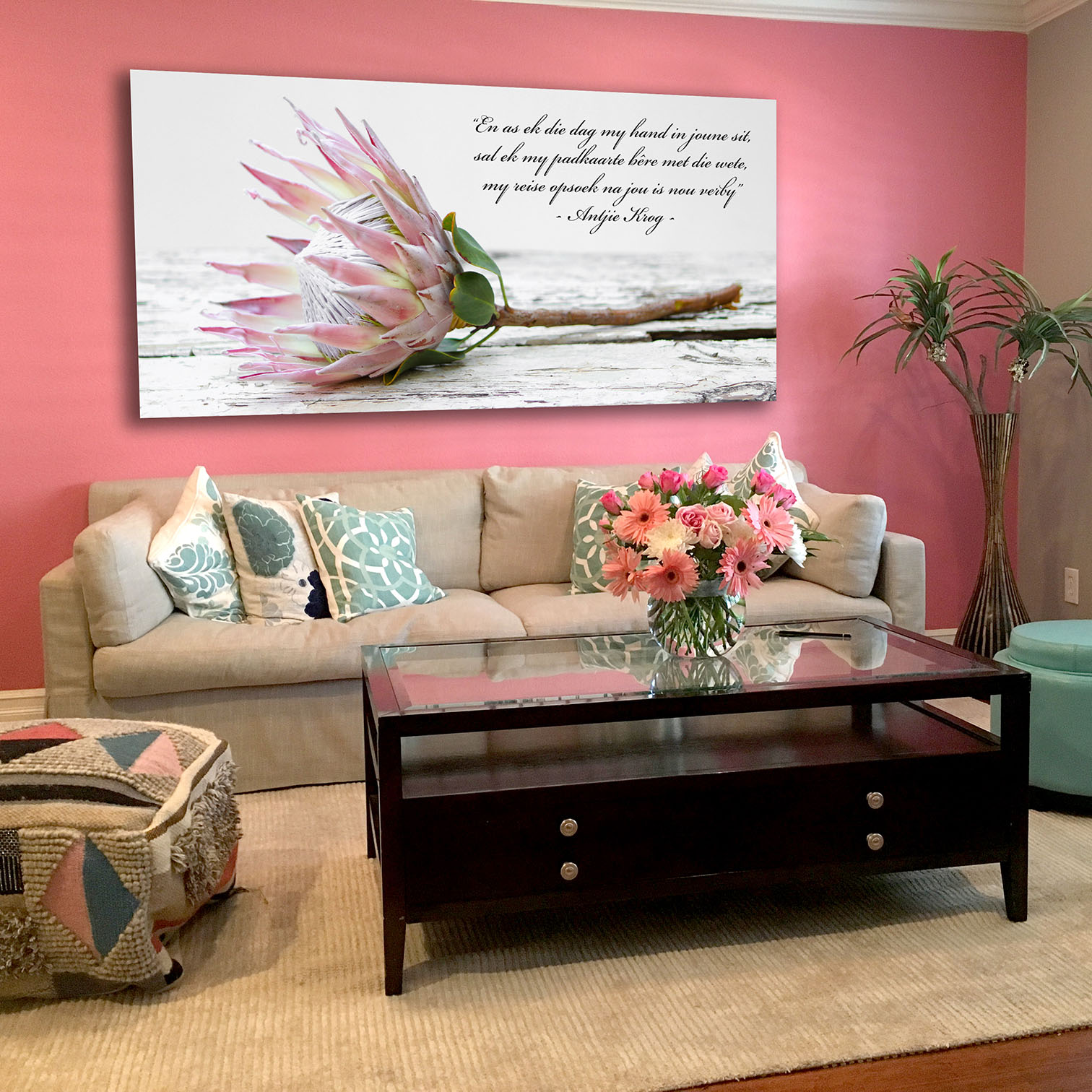 Canvas – Pienk Protea met Antjie Krog Woorde (0575)